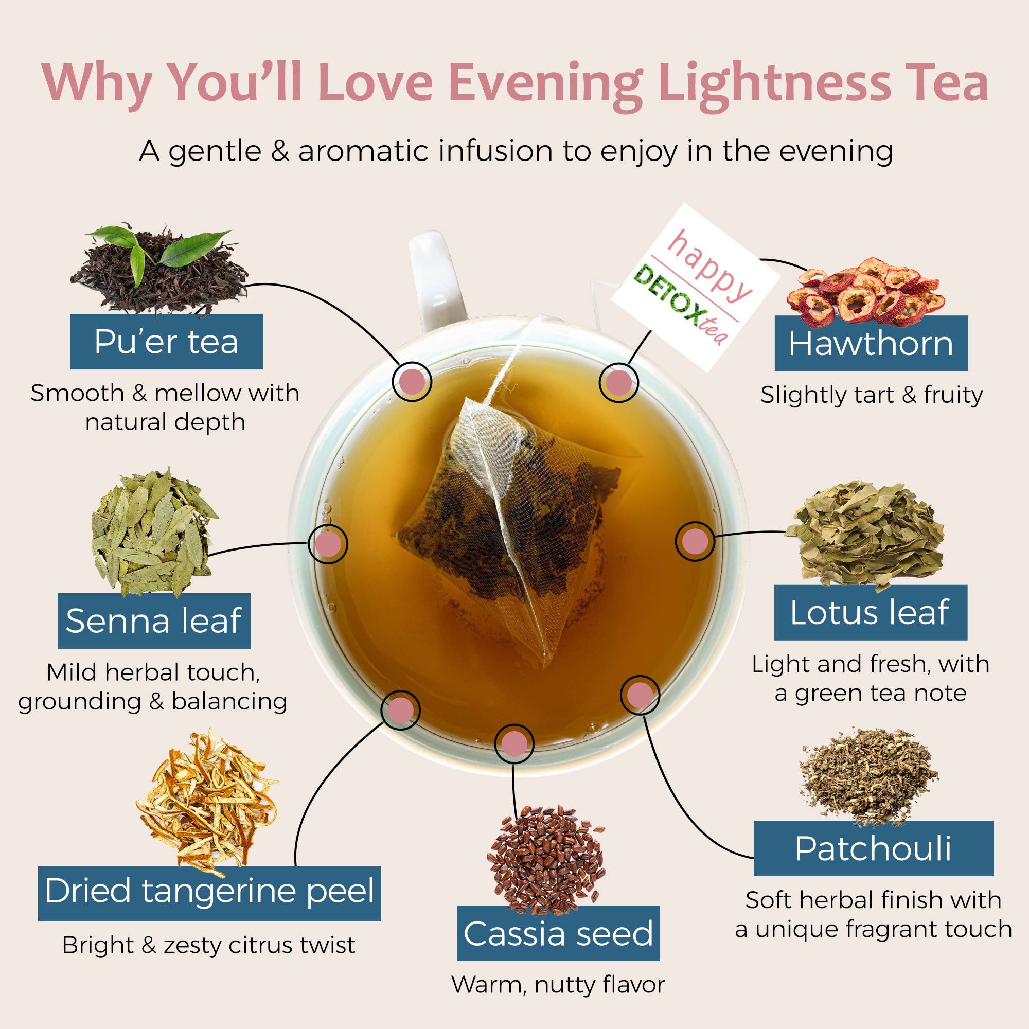 Grâce à ses ingrédients, le thé minceur Happy Detox Tea